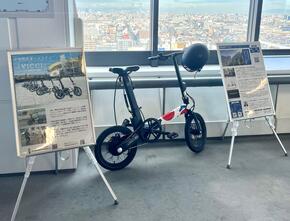 万博会場の未来のショーケース事業「スマートモビリティ万博」において、関係者モビリティとして採用された電動折り畳み自転車「VICCI(ヴィチ)」。