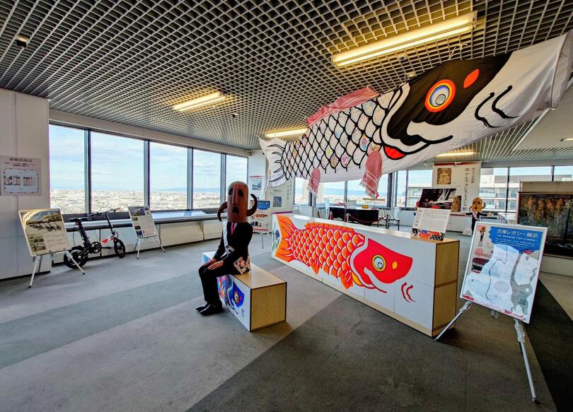 万博会場のパビリオンや催事会場を舞台に事業者・団体などと制作した鯉幟アートファニチャーやアップサイクル楽器等を展示しています。