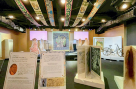 堺緞通や注染、堺刃物、自転車といった堺の伝統産業とのコラボレーション作品の展示をはじめ、ミュシャがフランスのパリで活躍していた時代に描いた作品をモチーフとした会場装飾を行いました。