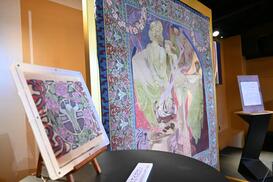 堺緞通で織られたミュシャ作品「クオ・ヴァディス」