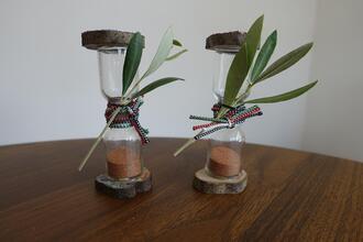 (1)オリーブの木とヨルダンの砂漠の砂を使用した砂時計制作ワークショップ