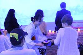 ヨルダンパビリオン内の砂漠空間を茶室に見立て、大阪公立大学茶道部の学生が主体となり、万博ならではの特別な体験をお届けしました。
