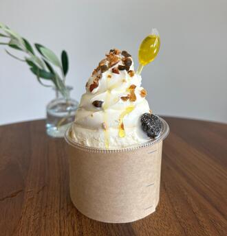 (4)ヨルダンカフェのソフトクリームと堺産レモンオリーブオイルのコラボメニューの提供
