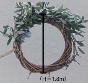 【内容】直径180 センチメートルのつるにオリーブの切り枝を挿し、大型リースの装飾を完成させます。