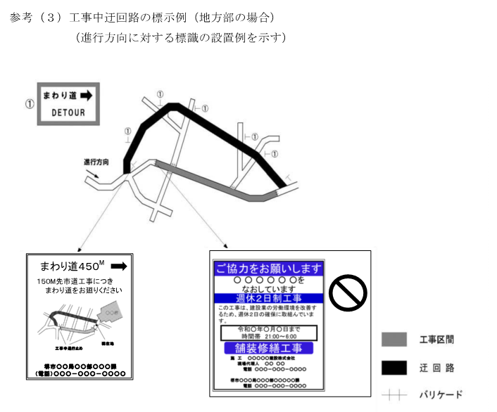 道路工事のための迂回路を設ける場合は、当該迂回路を必要とする時間中、迂回路の