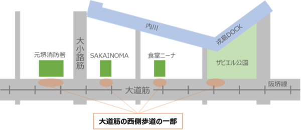 ・元堺消防署前およびザビエル公園前:歩行者などの休憩スペース