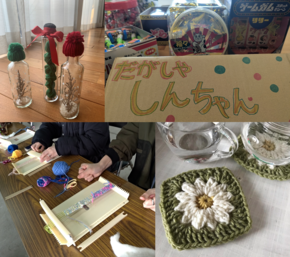 手織りや手編みのワークショップのほか、手作り品の販売、ゲーム、ミニ駄菓子屋さんなど、こどもから大人まで楽しめます。