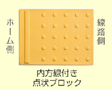 内方線付き点状ブロックは、点状の突起に加え、ホーム側が分かる線状の突起を設けることで、視覚障害のある方のホームからの転落事故を防止する設備です。