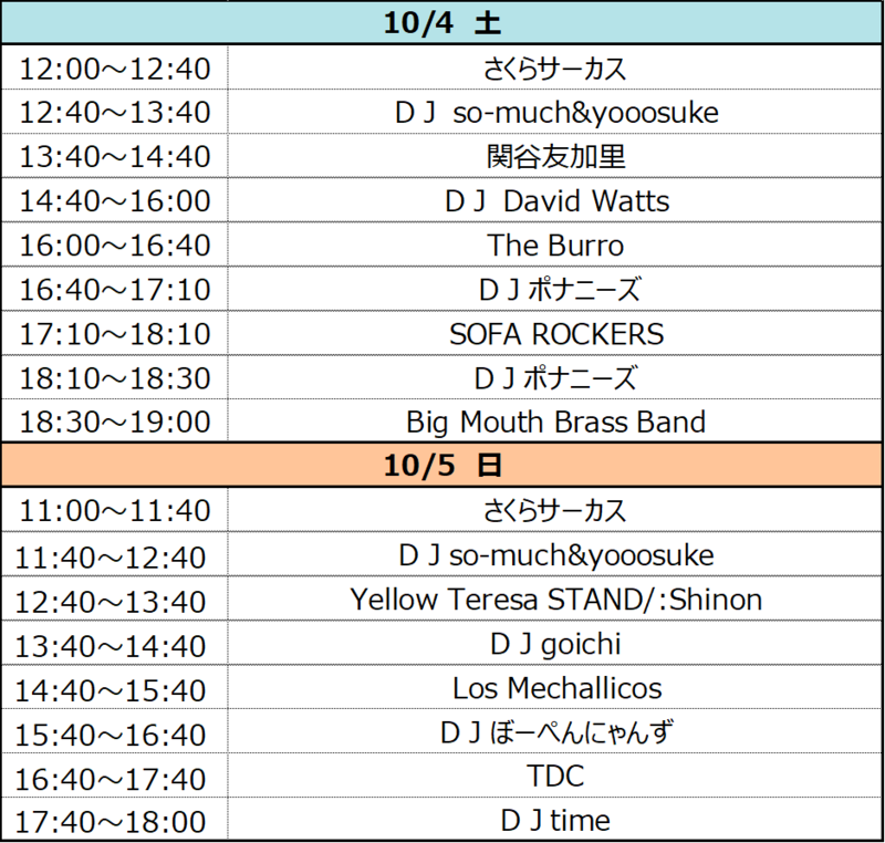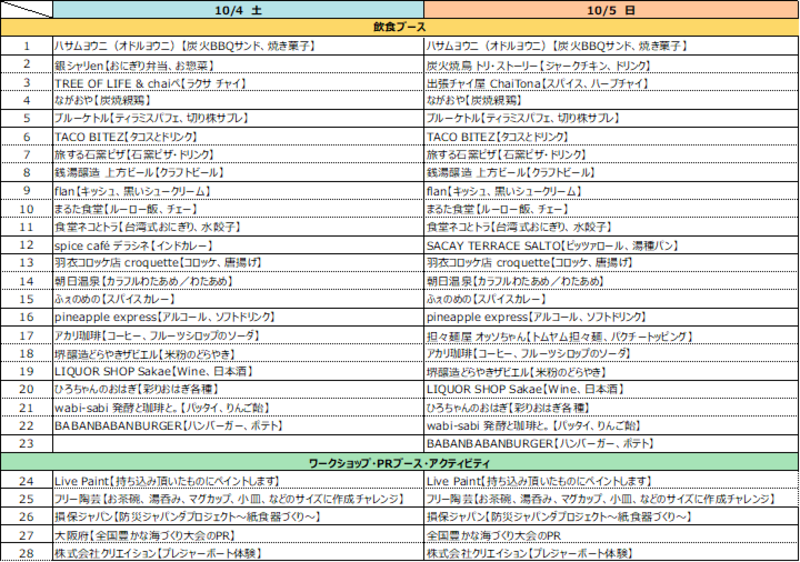 飲食店やワークショップの出店者一覧、音楽やパフォーマンス等のライブスケジュール、プレジャーボート乗船体験について情報を公開しました。