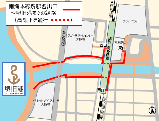 南海本線堺駅からの経路