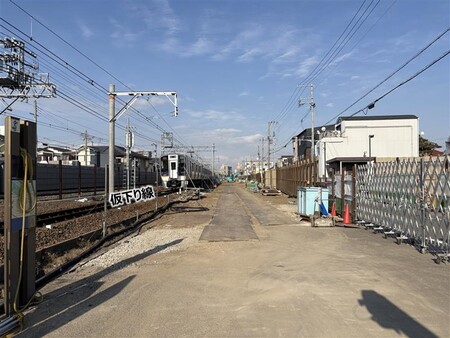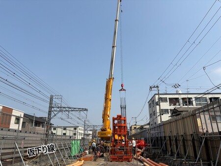 諏訪ノ森駅周辺でのR4年度中の仮上り線切替えに向けて、仮上り線の仮ホーム整備工事を行っています。
