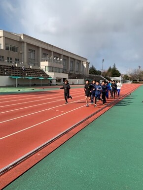 令和5年1月28日(土曜)、堺市金岡公園陸上競技場において、「2023さかい陸上フェスタ」(主催:堺市教育スポーツ振興事業団)が開催され、本市との包括連携協定に基づく取組として、市内の中学陸上部に所属する生徒を対象に、三井住友海上女子陸上競技部コーチ・渋井陽子さんをお招きし、直接指導していただきました。