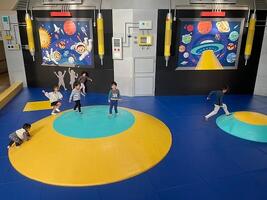 ビッグバンはこどもだけでなく大人も楽しめる全天候型の「あそび」空間です。宇宙船をモチーフにした建物の中には、ここでしか体験できないたくさんの「あそび」が詰まっています。