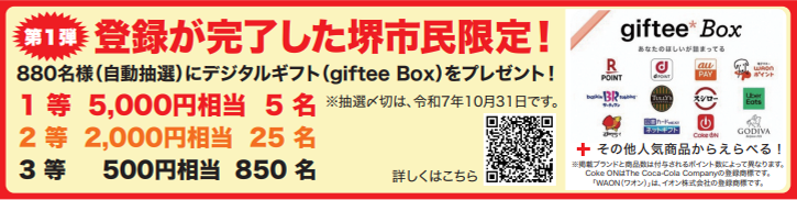 【終了しました】堺市民登録者限定!最大5,000円相当のデジタルギフトが880人にあたる登録キャンペーン実施中!