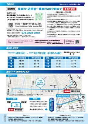 令和7年11月5日(水曜)~令和8年2月27日(金曜)平日のみ運行(年末年始除く)