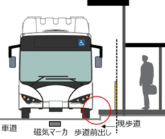 磁気マーカを用いて、自己位置推定精度を高め、停留所と隙間なく正着できるか検証します。また、仮設プラットホームを整備し、車両乗降口とプラットホームの高さを合わせ、車いす利用者等が介助なく乗降できるか検証します。