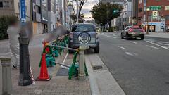 大小路筋の歩道の一部を活用し、停車帯を広げ、自動運転車両の走行ルートを確保し、将来的な停車帯拡幅形状や、手動介入低減効果について検証します。