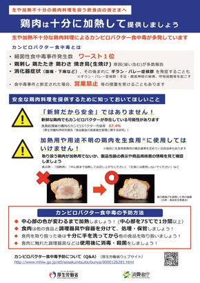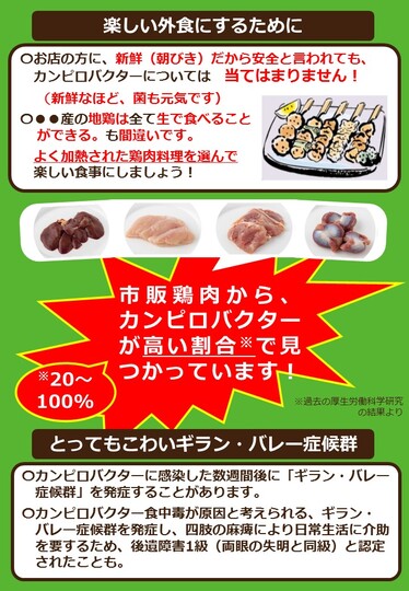 - 生や加熱不十分の鶏肉を提供し、食中毒事件として断定された場合、営業停止等の措置を受けることもあります。