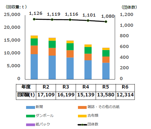 令和6年度は、皆さまのご協⼒のおかげで、12,314トンの古紙類や古布類が集められました。