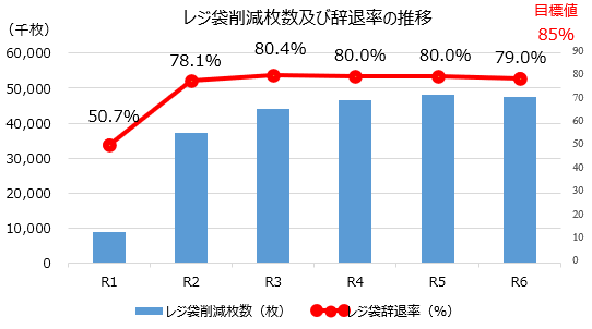 堺市は、引き続きレジ袋辞退率85%を目標に取り組んでまいります。